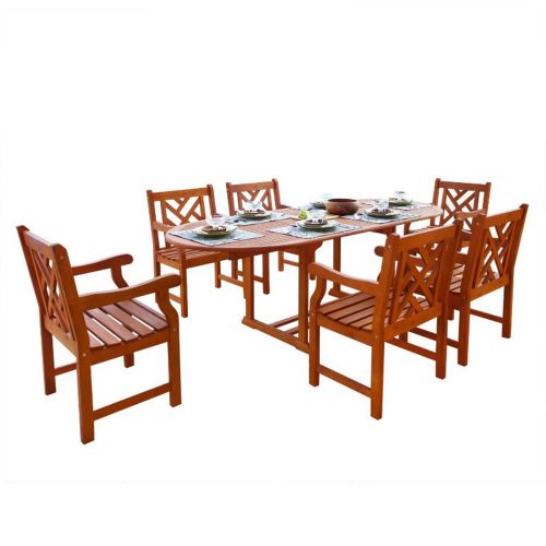 Malibu Outdoor 7-Piece Wood Patio Dining Set with Extension Table V144SET7