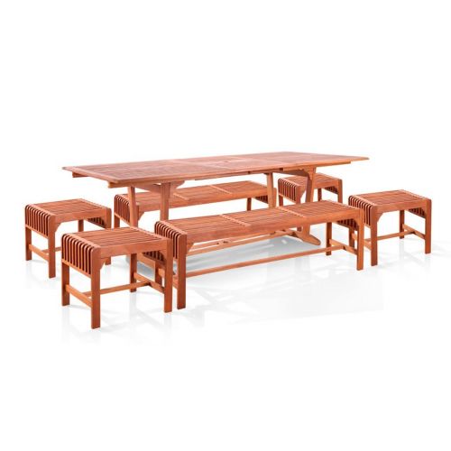 Malibu Outdoor 7-Piece Wood Patio Dining Set with Extension Table, Backless benches & Chairs V232SET30