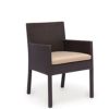 Maxime outdoor wicker dining set with 4 dining chairs, 2 arm chairs and one 84 inch rectangle table. Bold geometric design. Made for comfortable outdoor dining. Plush and thick Sunbrella cushions. Made from Viro outdoor wicker over strong aluminum frames. Maintenance free. Can be washed down with water. Totally outdoor resistant. Viro outdoor wicker is handbraided and highly resistant to fading, cracking or mildew. Cushions are made from Sunbrella fabric and durable for outdoor use. Seat cushion included. Wicker available in Espresso only.