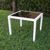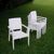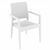 Miami white Wickerlook resin patio dining set with four armchairs and one square table. Wickerlook resin is a natural looking un-woven one piece furniture technology. Wickerlook patio furniture is made with open weave design that resembles traditional woven wicker furniture. Unlike any other woven furniture in the market Wickerlook furniture will never unravel. Made for commercial durability. Chairs are stackable. UV treated. Hose down for cleaning. Withstands outdoor temperatures summer and winter. Table has dark tinted tempered glass and legs have levelers for uneven surfaces. Color: white wicker. Chairs certified for strict European standards by CATAS Italian research institute and test laboratory.
