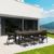 Rattan Gray Panama extendable patio dining set with eight dining chairs and one dining table that extends from 102 inches to 118 inches. New round back design. Wickerlook resin is a natural looking un-woven one piece furniture technology. Wickerlook patio furniture is made with open weave design that resembles traditional woven wicker furniture. Unlike any other woven furniture in the market Wickerlook furniture will never unravel. No metal parts to rust, no moving parts that can break. Made for commercial durability. Chairs are stackable. Perfect for heavy use areas such as hotels and restaurants. UV treated. Hose down for cleaning. Withstands outdoor temperatures summer and winter. Certified for strict European standards by CATAS Italian research institute and test laboratory.