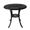 This charming dining set is a great component for your classic European tea time or coffee talk. The table features an ornately carved top with with umbrella hole. The chairs feature a rose motif and complement the table nicely.