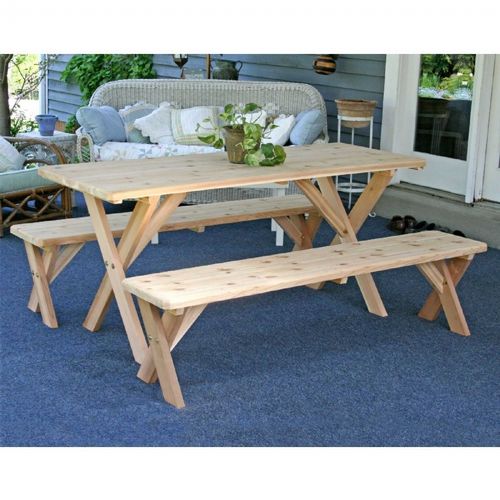 Red cedar 27" wide 6' backyard bash cross legged picnic table w/ detached benches natural. The beautiful 27" backyard bash cross legged picnic table with detached benches will be a spectacular addition to your porch, patio, deck, backyard, or gazebo. It is crafted from 100% red cedar, which possesses an abundance of natural oils that make it resistant to insects, warping, and decay. It's one of the most durable wood picnic tables available with its attractive cross-legged design. It is made up of natural western red cedar and the hardware comes in zinc plated steel. This set Includes a cross legged table and cross legged benches. It features two separate optional stain/sealer in cedar or white with an additional fee of 28%. It also has rounded and sanded edges. The 2" umbrella hole is also optional and it is made in the U.S.A.