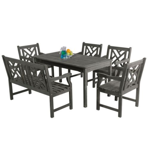 Renaissance Outdoor 6-Piece Hand-scraped Wood Patio Dining Set with 4-foot Bench V1297SET19