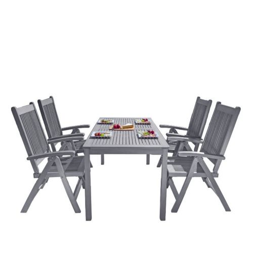 This Renaissance Outdoor Patio Hand-scraped Wood 5-piece Dining Set with Reclining Chairs is a unique way to display your personal style!