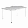 Riba outdoor dining set with four dining chairs and one rectangle table from Triconfort. Offers contemporary design with five star luxury. Chairs made from synthetic outdoor wicker over aluminum tubing. Maintenance free. Very strong. Can be washed down with water. Totally outdoor resistant. Table made from aluminum frame with marble top. Maintenance free. Very strong. Can be washed down with water. Totally outdoor resistant. Frame is offered in two colors; white and manganese. Table top is natural marble for both frames.