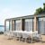 Siesta LogoSky Pro 11 piece extendable dining set with ten stacking arm chairs and one rectangle table. Chairs and table top made from marine grade polypropylene. Great for outdoor spaces, patios and decks. Used by restaurants, cafes and hotels.