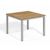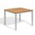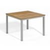 Travira aluminum dining set with stacking sling chairs and teak-top table from Oxford Garden. Classic yet sleek look. Lightweight frames combined with the sling seats and backs move and stack easily. Sculpted wood arm caps of teak add contrast and warmth. Slotted table top crafted of beautiful teak, includes 1 and ⅝ inch umbrella hole and cap. Leg end caps provide protection from marring and scratching of surfaces. Durable aluminum powder coated frames resist weathering. Sling available in white.