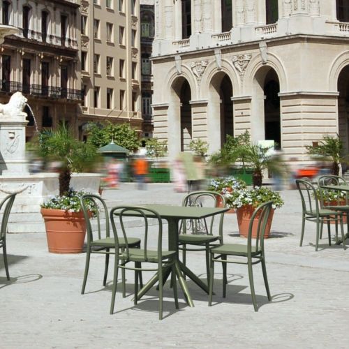 Resin indoor outdoor dining set made from marine grade polypropylene. Great for outdoor spaces, patios and decks. Used by restaurants, cafes and hotels.