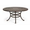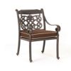 Victoria cast aluminum garden dining set with seat cushion. Garden set includes four chairs and one round 56 inch table. Traditional English garden design cast aluminum dining furniture. Collection items provide spacious proportions. Strong cast and tubular frames come with four inch Sunbrella seat cushions. Aluminum is powder coated so it won't chip, fade, or scratch. Desert bronze color frames gives a traditional aged look. Perfect for outdoors. Cushions are made of Sunbrella fabric and available in multiple colors. Cushion covers can be machine washed. Cushion included in price. Frame color: Desert Bronze.