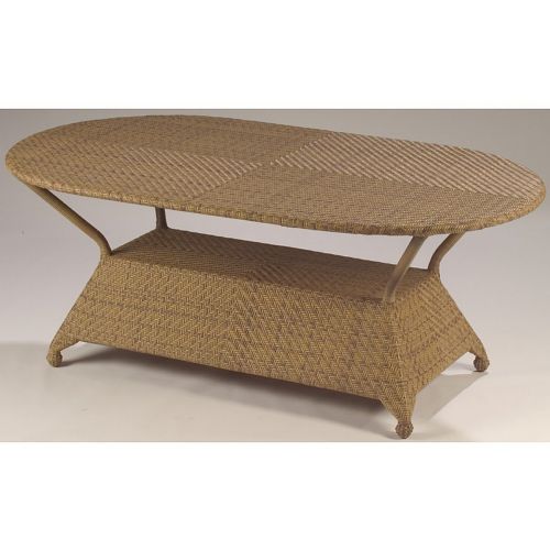 Outdoor dining table 72 inch oval from Whitecraft. Offers traditional outdoor designs with an emphasis on larger pieces for added comfort. All furniture items are made with aluminum frames with powdercoating finishes woven with high density polyethylene wicker. Woven wicker mimics the natural beauty and character while providing maintenance-free and easy to clean use. Outdoor wicker will not rot, peel, fade or chip. Table has umbrella hole.