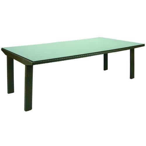 Biarritz 63" rectangle outdoor dining table from Triconfort. Biarritz collection have been introduced in 2006. Triconfort has been the leading name behind modern outdoor furniture designs over 30 years. Made from synthetic outdoor wicker over aluminum tubing. Maintenance free. Can be washed down with water. Totally outdoor resistant. Color chestnut. Glass top included.