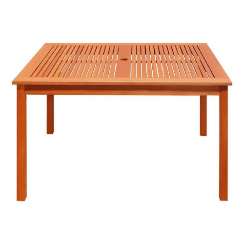 Made from 100% Eucalyptus - a very durable Hardwood, this table can stand up to all kinds of changes in the weather. The cores of the Eucalyptus is very dense; thereby it quickly repels water, and its natural oil combats and repels wood eating insects.