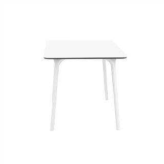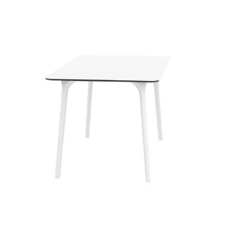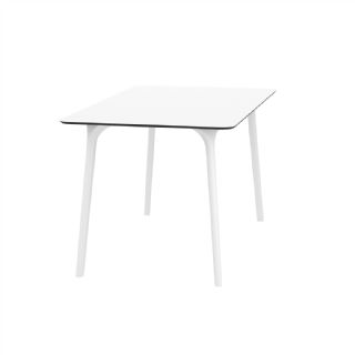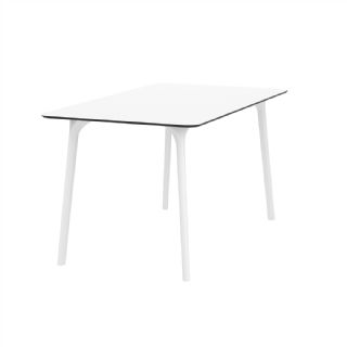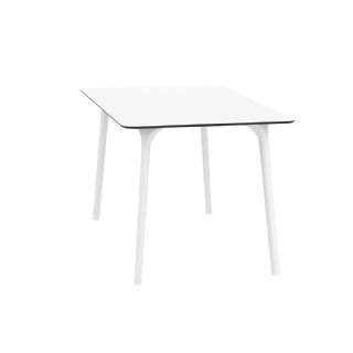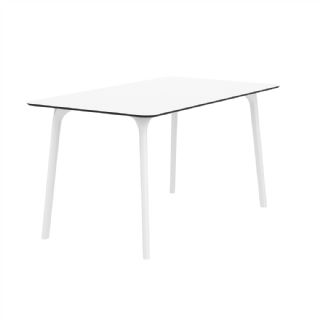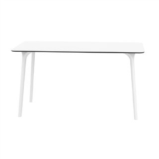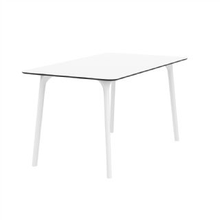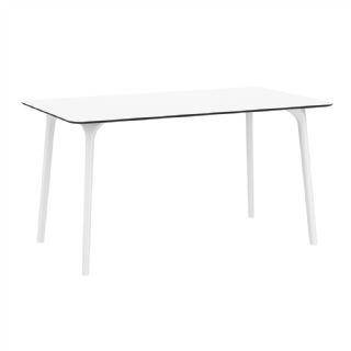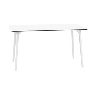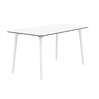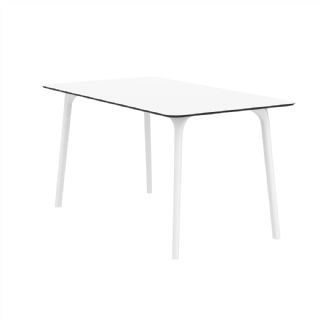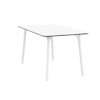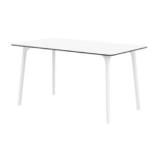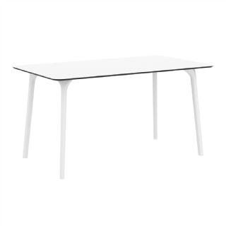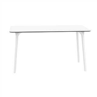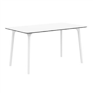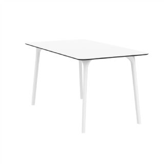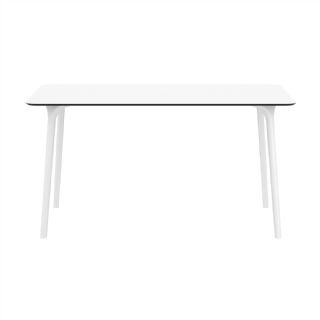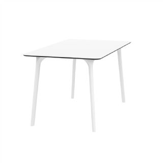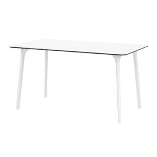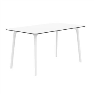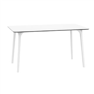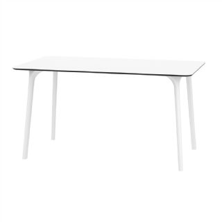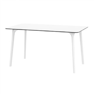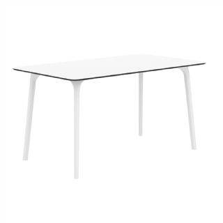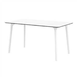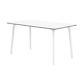 White Maya 55 inch by 30 inch rectangle indoor outdoor dining table. HPL laminated tops with the latest generation of air molding thermoplastic legs. Very strong and heavy. Great for patios, balconies, garden and poolside dining. Preferred by restaurants and hotels. Can be disassembled. Resin plastic is resistant to outdoors and harsh weather conditions.