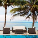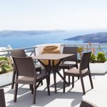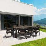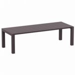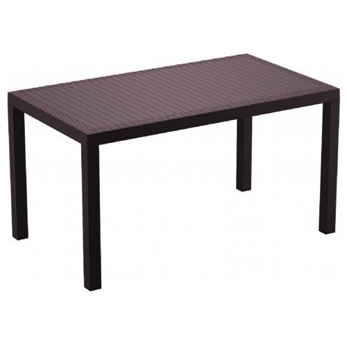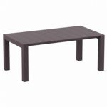 Orlando woven-wicker-looking rectangle patio dining table with smooth top. Unlike any other woven outdoor furniture in the market Wickerlook furniture will never unravel. Made for commercial durability. Perfect for hotels and restaurants. UV treated. Hose down for cleaning. Withstands summer and winter outdoor temperatures. Made for outdoors.