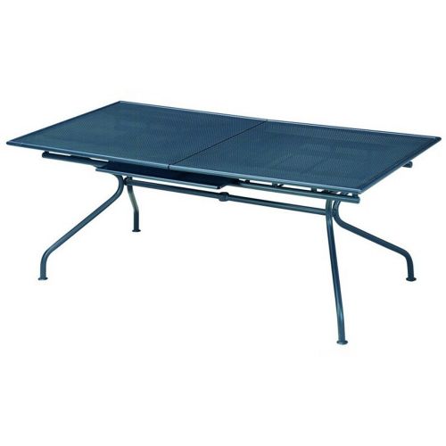 Piano 80 inch extension rectangle dining table from Emu. Features tubular steel frames. Built in extension leaf is 28 inches. 100% outdoors resistant. Light and comfortable. Hand painted and hand polished with special weather resistant coating. Frame available in white, antique bronze and antique iron. Extension leaf is very easy to use.