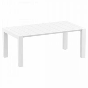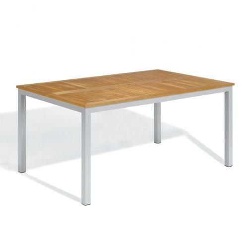 Travira aluminum and teak rectangle dining table from Oxford Garden. Classic yet sleek look. Aluminum lightweight frames combined with teak wood top. Leg end caps provide protection from marring and scratching of surfaces. Durable aluminum powder coated frames resist weathering.