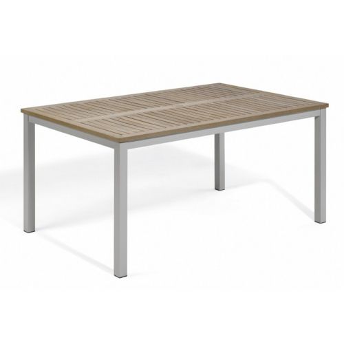 Travira aluminum and Tekwood Vintage rectangle dining table from Oxford Garden. Classic yet sleek look.Aluminum lightweight frames combined with Tekwood Vintage wood top. Leg endcaps provide protection from marring and scratching of surfaces. Durable aluminum powder coated frames resist weathering.
