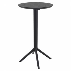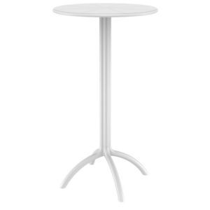 Evolutif Ascot lacquered resin round 48" outdoor dining table. High gloss laquer coated resin gives an elegant look for any pool and patio area. White lacquered resin resistant to outdoors. For 4 guests. Outdoor table has a 1.5" capped hole for umbrellas.