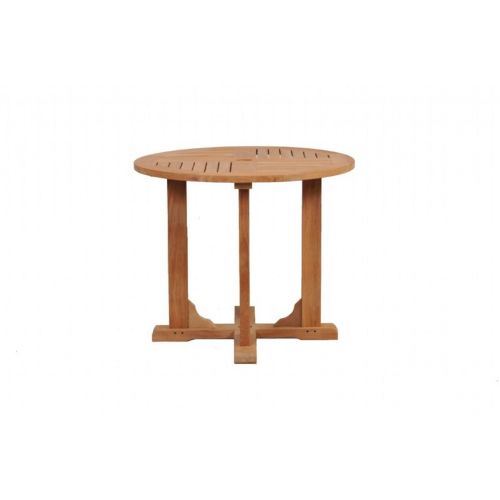 Modern teak round bistro dining table. 36 inch diameter is perfect for smaller areas. Simple and elegant design. Made with kiln-dried, grade a teak wood. Teak wood is natural and suitable for outdoors. Requires regular teak wood maintenance. Great to use for smaller areas. No assembly required. Dimensions: 36"D × 29"H.