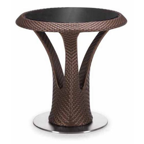 Nuevo wicker Tulip outdoor bistro table with 23 inch diameter. Contemporary unique design. Made with outdooor resistant syntetic wicker. Aluminum tube structure, covered with high quality, resistant, synthetic wicker fibre that maintains its color unchanged. Double wall weaving construction. Totally resistant to outdoors. UV resistant. Wicker will not fade or discolor.