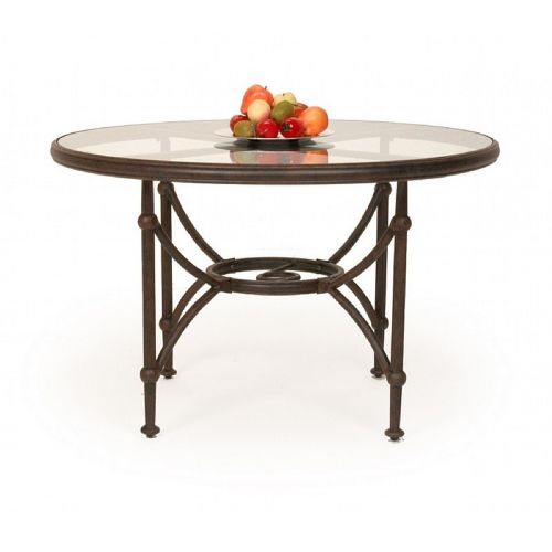 Origin cast and tubular aluminum patio round dining table with 48 inch diameter with glass top. Classic Mediterranean design cast aluminum furniture collection. The top is made out of 5mm thick tempered glass. Seats 4. Strong cast and tubular frames. All corners are welded 360° for maximum strength and powder coated so it won't chip, fade, or scratch. Perfect for outdoor dining. Table has a 2.01 inch hole to fit most patio umbrellas. Plastic foot levelers included.