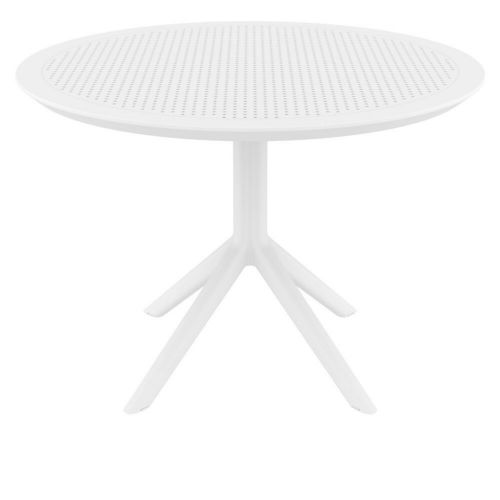 Sky 42 inch round dining table. Resin top with the latest generation of air moulding thermoplastic legs. For indoor and outdoor use.