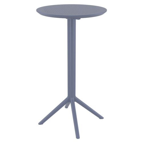 Sky round bar table with folding top. Resin top with the latest generation of air moulding thermoplastic legs. For indoor and outdoor use. Can be disassembled.
