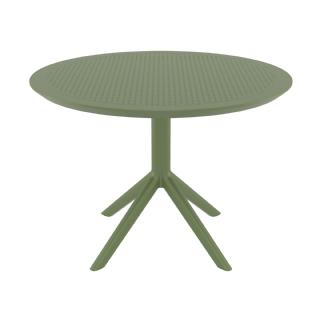 Sky 42 inch round dining table. Resin top with the latest generation of air moulding thermoplastic legs. For indoor and outdoor use.