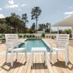 Color: Dark GreenThese tables are so hard to find! Exactly what we need for our Resort. Easy storage for the harsh winters. Color hasn't faded, great product, delivery excellent, thank you!
