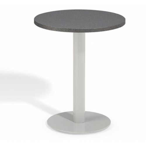 Travira Steel and Alstone Graphitel Bistro Table from Oxford Garden. Classic yet sleek look. Steel lightweight frames combined with Alstone Graphite top. Leg end caps provide protection from marring and scratching of surfaces. Durable steel powder coated frames resist weathering.