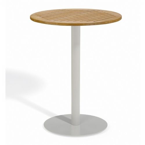 Travira Steel and Tekwood Natural Bar Table from Oxford Garden. Classic yet sleek look. Steel lightweight frames combined with Tekwood Natural top. Leg end caps provide protection from marring and scratching of surfaces. Durable steel powder coated frames resist weathering.