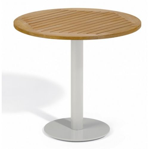 Oxford Garden LogoTravira Steel and Tekwood Natural Bistro Table from Oxford Garden. Classic yet sleek look. Steel lightweight frames combined with Tekwood Natural top. Leg end caps provide protection from marring and scratching of surfaces. Durable steel powder coated frames resist weathering.
