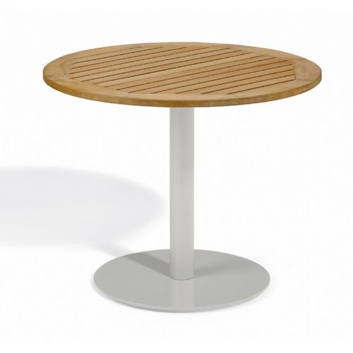 Oxford Garden LogoTravira Steel and Tekwood Natural Bistro Table from Oxford Garden. Classic yet sleek look. Steel lightweight frames combined with Tekwood Natural top. Leg end caps provide protection from marring and scratching of surfaces. Durable steel powder coated frames resist weathering.