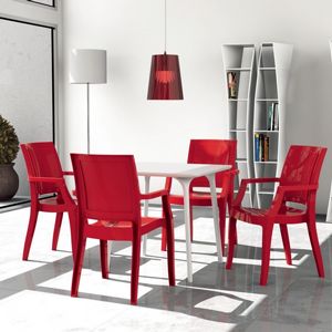 Dejavu polycarbonate collection is made for commercial durability both indoors and outdoors. Collection is offered in transparent and glossy colors. Ultra modern design and finish. Siesta polycarbonate chairs are 100% break resistant and are very sturdy and durable. Glossy finish is scratch resistant. Dejavu collection retro patio chairs are resistant to outdoors and totally maintenance free. Contemporary and simple design makes this collection perfect for modern settings such as hotels, cafes, restaurants and condominums. All chairs are stackable.