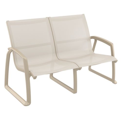 Taupe Pacific resort quality club loveseat with arms. Simple sleek design with commercial strength. Sling is made with Serge Ferrari mesh fabric. Very comfortable and no need for cushions. Frame made of marine grade resin polypropylene. Extremely durable and comfortable. Commercial grade.