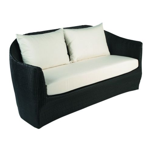 Venezia outdoor sofa two seater from Kettal. New for 2008. Venezia collection features modern european design with an emphasis on curves and smooth looks. Outdoor sofa loveseat is comfortable with four inch cushions and a perfect fit for deep seating arrangements. Sofa made with aluminum framing and all weather wicker. Unsurpassed craftsmanship and ultimate luxury. Dimensions: 31 inches deep, 65 inches wide, 33 inches high. Wicker available in chestnut. Cushions available in canvas and brown.