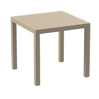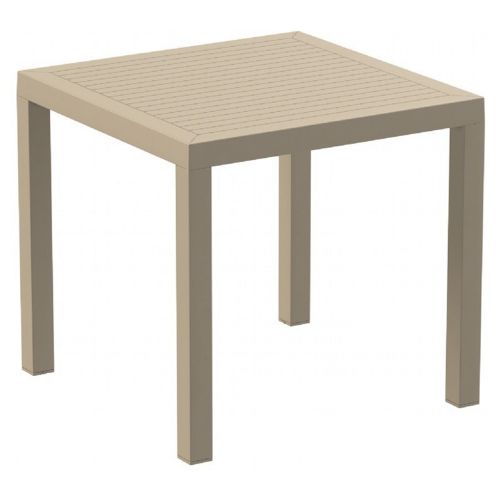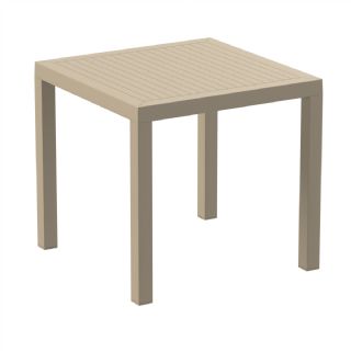 Ares resin square outdoor dining table. Made of high quality resin. Table top is 31 inches square. Extremely durable for outdoor environments. Strong and stable legs. Square resin table is perfect for pool, beach and heavy use areas. Resistant to suntan oils, chlorine and saltwater. UV protected. Commercial grade. For indoor and outdoor use.