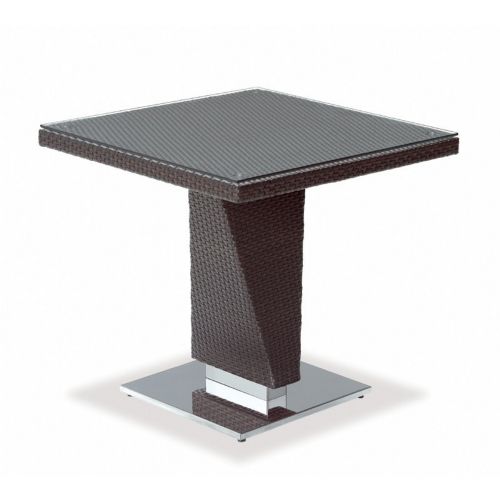Cuba outdoor wicker dining table from Emu. 34 inch square. Made with weather resistant aluminum tubing, covered with synthetic wicker wowen to perfection. Synthetic wicker is similar to natural fibre but totally resistant to outdoors. Outdoor wicker available in three colors white wisp, natural and dark brown. Clear glass top is included.