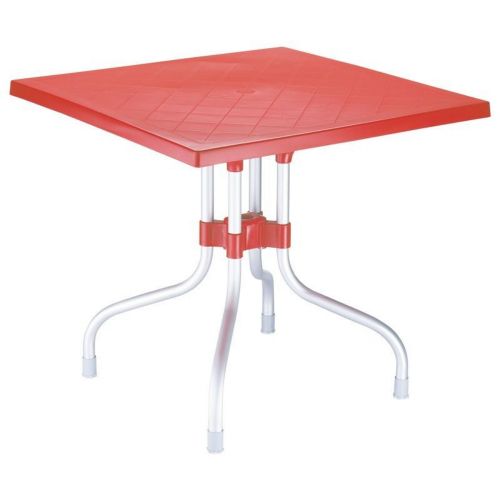 Siesta LogoRed Forza square folding table from La Maya collection. Forza table has a very unique folding system. Very strong and sturdy. Legs fold up very easily for storage. Perfect for restaurants, hotels. Table top in resin. Legs in anodised aluminum.