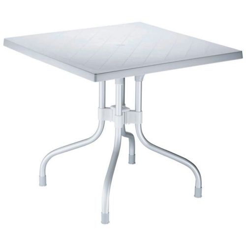 Silver Gray Forza square folding table from La Maya collection. Forza table has a very unique folding system. Very strong and sturdy. Legs fold up very easily for storage. Perfect for restaurants, hotels. Table top in resin. Legs in anodised aluminum.