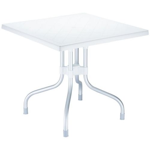 White Forza square folding table from La Maya collection. Forza table has a very unique folding system. Very strong and sturdy. Legs fold up very easily for storage. Perfect for restaurants, hotels. Table top in resin. Legs in anodised aluminum.