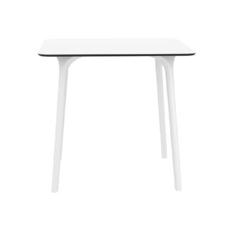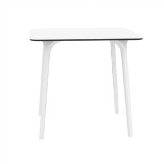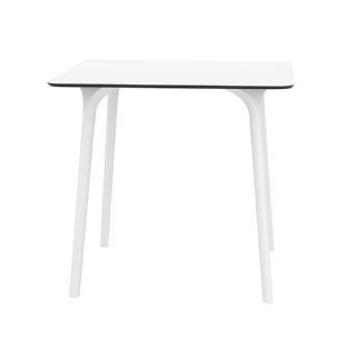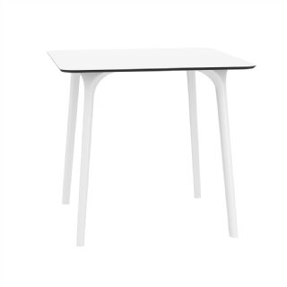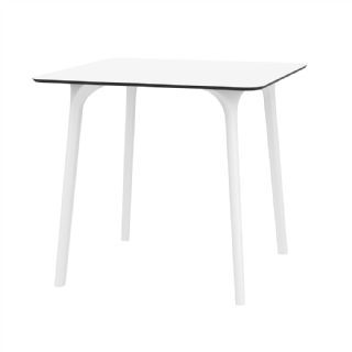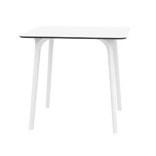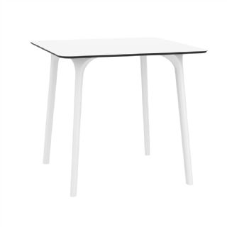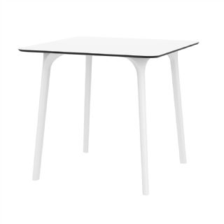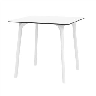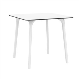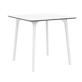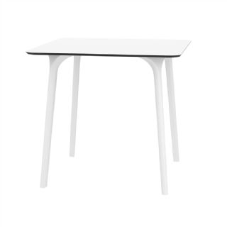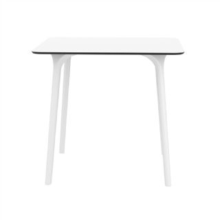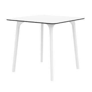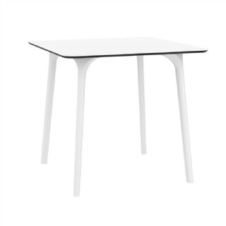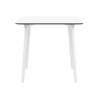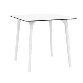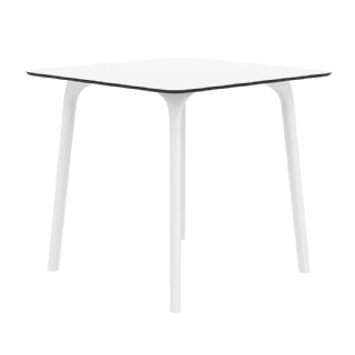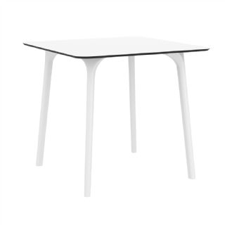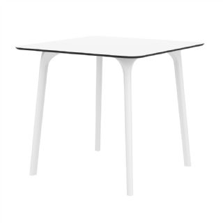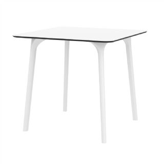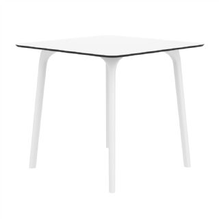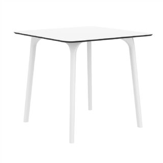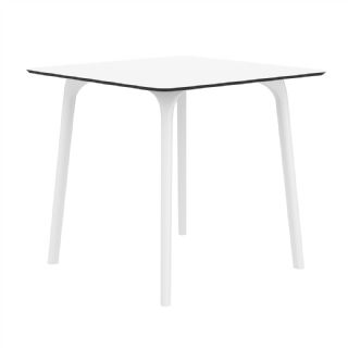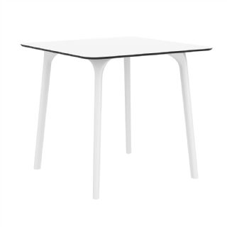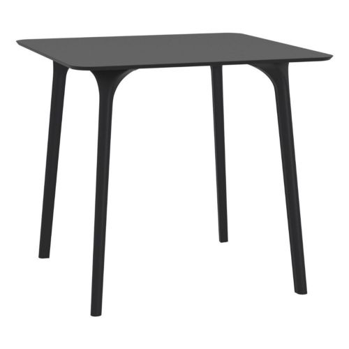 Black Maya 31 inch square indoor outdoor dining table. HPL laminated tops with the latest generation of air moulding thermoplastic legs. Very strong and heavy. Great for patios, balconies, garden and poolside dining. Accommodates four guests. Preferred by restaurants and hotels. Can be disassembled. Resin plastic is resistant to outdoors and harsh weather conditions. Not recommended in direct sunlight.