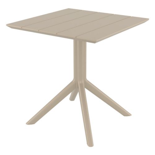 Square dining table. Resin top with the latest generation of air moulding thermoplastic legs. For indoor and outdoor use.