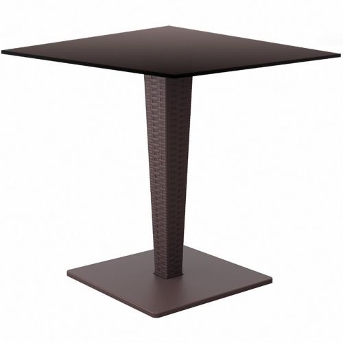 Riva square dining table. HPL resin top with woven look resin pedestal and aluminum base. For indoor and outdoor use.