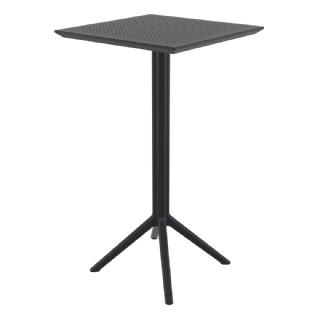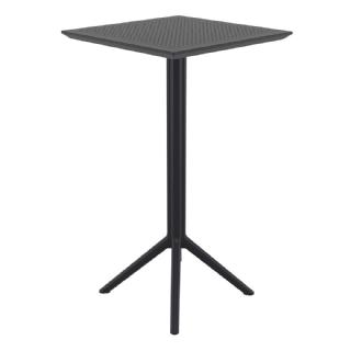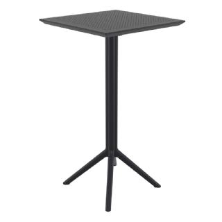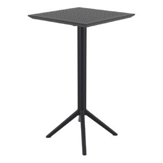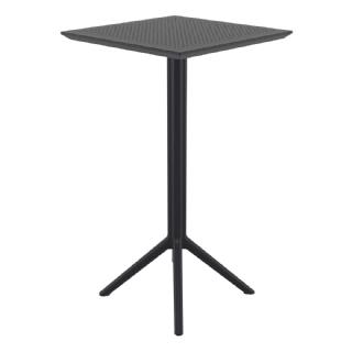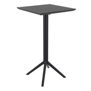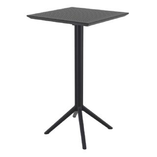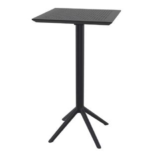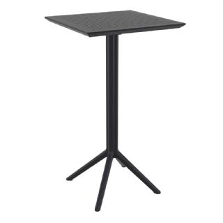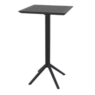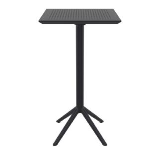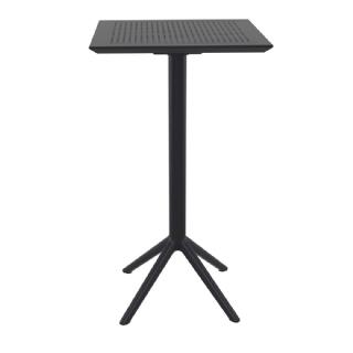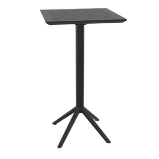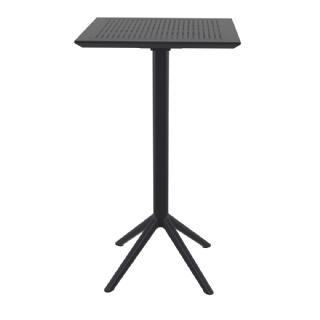 Sky resin outdoor bar table with 24 inch folding square top. Both top and body are made of high quality polypropylene for durability and a stable posture. Table top has pinholes that helps with rainwater drainage and creates a modern look. One touch, easy folding. Extremely durable for outdoor environments. Table is perfect for balcony, pool, beach and heavy use areas. Resistant to suntan oils, chlorine and saltwater. UV protected. For indoor and outdoor use.