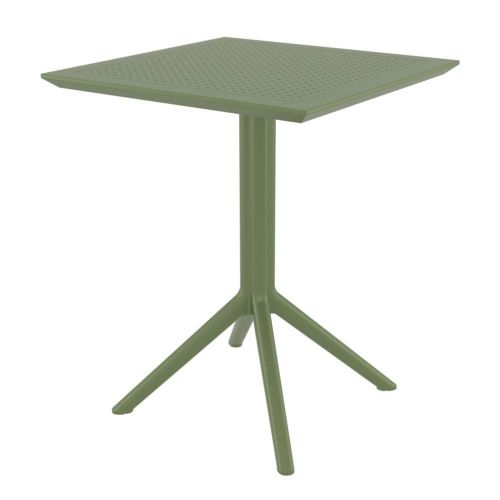 Sky square dining table with folding top. Resin top with the latest generation of air moulding thermoplastic legs. For indoor and outdoor use. Can be disassembled.