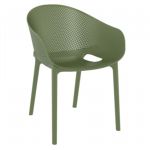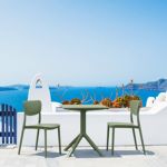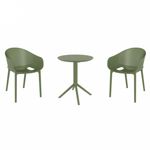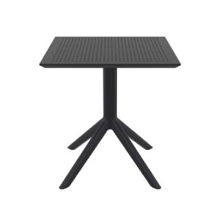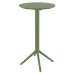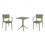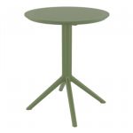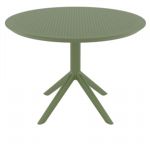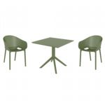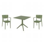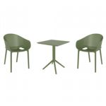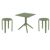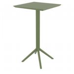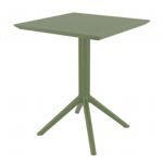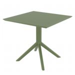 Olive green Sky resin outdoor dining table with 27.5 inch square top. Both top and body are made of high quality resin with concealed metals for a heavier more stable posture. Table top has pinholes that helps with rainwater drainage and creates a modern look. Extremely durable for outdoor environments. Table is perfect for balcony, pool, beach and heavy use areas. Resistant to suntan oils, chlorine and saltwater. UV protected. For indoor and outdoor use.