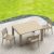 Taupe Vegas square patio dining table extendable from 39x39 to 39x55. Resin top table is made for commercial durability. Practically extendable for accommodating more guests. UV treated. Hose down for cleaning. Withstands summer and winter outdoor temperatures. Made for outdoors. Certified for strict European standards by CATAS Italian research institute and test laboratory.