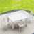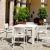 White Vegas square patio dining table extendable from 39x39 to 39x55. Resin top table is made for commercial durability. Practically extendable for accommodating more guests. UV treated. Hose down for cleaning. Withstands summer and winter outdoor temperatures. Made for outdoors. Certified for strict European standards by CATAS Italian research institute and test laboratory.